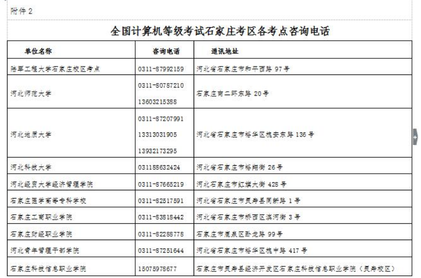 附件2. 全国计算机等级考试石家庄考区各考点咨询电话