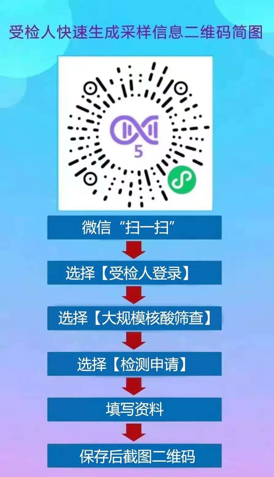 (2)请提前搜索“粤核酸5”小程序在家录入身份信息,生成“葵花码”(之前已生成的葵花码依然有效),并截图保存。老人、小孩等无智能手机的人群可由家人代为登记,到采样点后直接向工作人员展示二维码截图,减少等候,现场检测带上有效身份证件供核验。