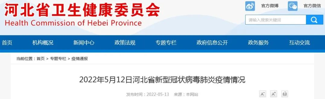 2022年5月12日0—24时,河北省无新增本土新型冠状病毒肺炎确诊病例;新增本土无症状感染者5例(承德市,均在集中隔离点筛查发现)。治愈出院1例,无症状感染者解除医学观察33例。