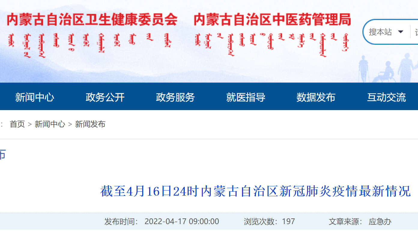 截至4月16日24时内蒙古自治区新冠肺炎疫情最新情况