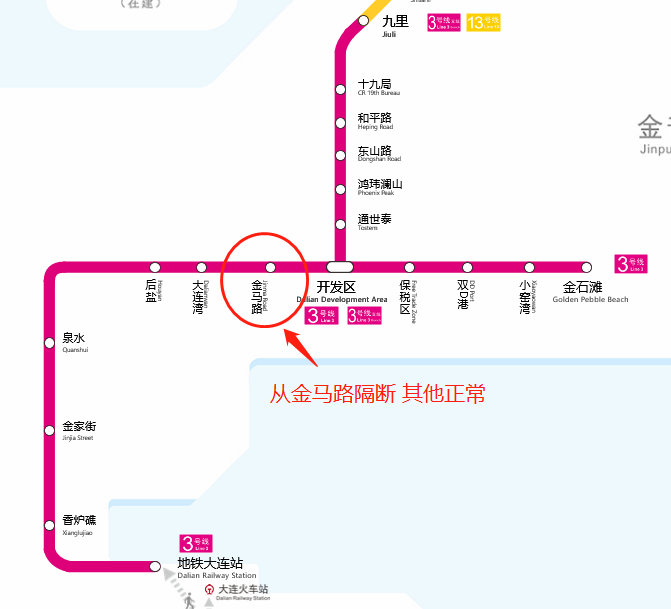 根据4月12日凌晨大连地铁发布的最新通知,主城区列车在大连站至大连湾站区间运行,金普新区列车在开发区站至金石滩站区间运行。