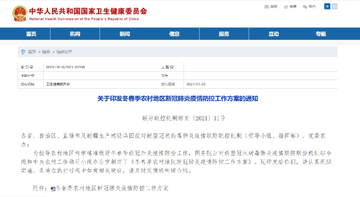 冬春季农村地区新冠肺炎疫情