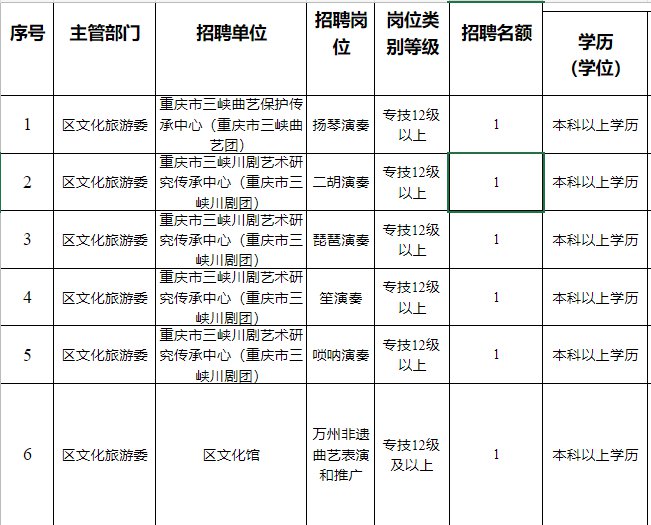 本次面向社会公开招聘工作人员6名,具体招聘单位及岗位:
