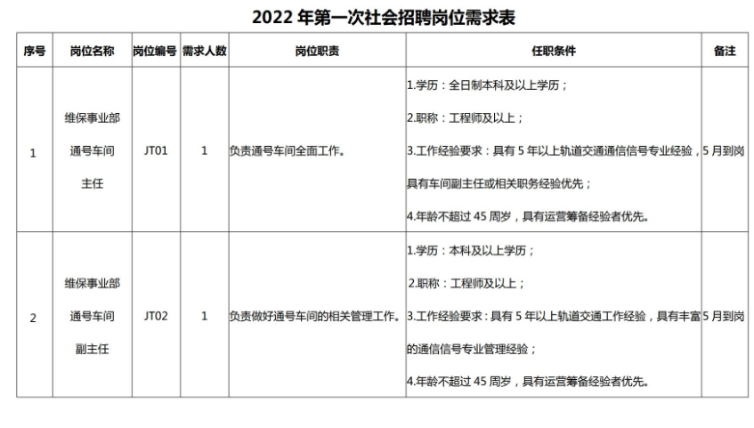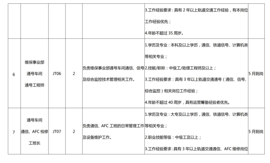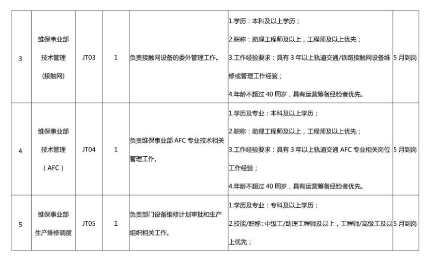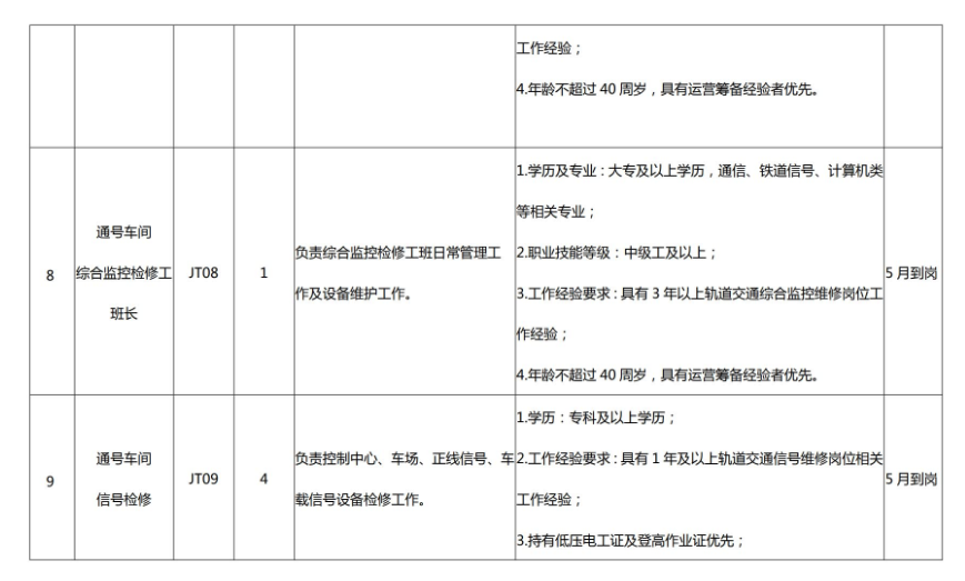 (四)具有轨道交通运营岗位相关工作经验,具备履行岗位职责所必备的专业知识、良好的职业素养和正常履职的身体素质,具体见招聘岗位所需的任职资格条件与要求。