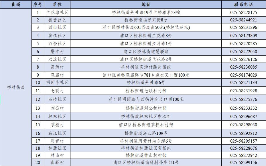 浦口区各街道社区(居委会)疫苗接种登记电话汇总: