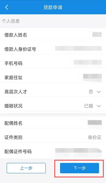 4、填写贷款信息后,点击“下一步”。