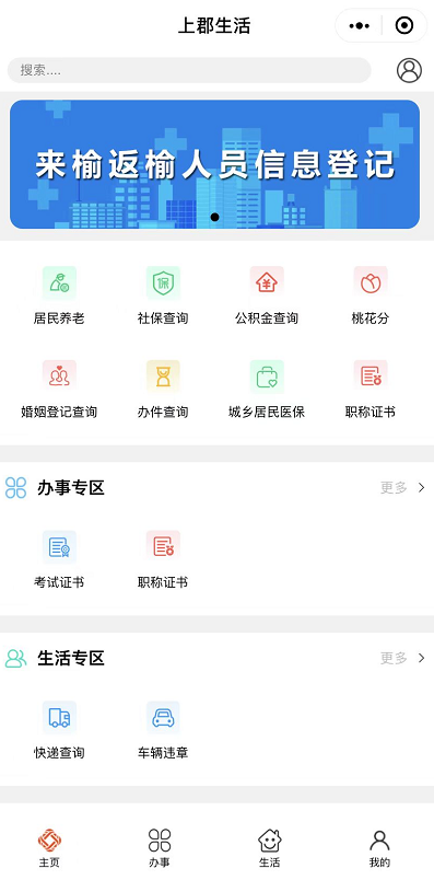 微信搜索小程序“上郡生活app”,点击进入,主页显示“来榆返榆人员信息登记”界面,点击进入,小程序获取用户手机号后,进入填报信息页面。