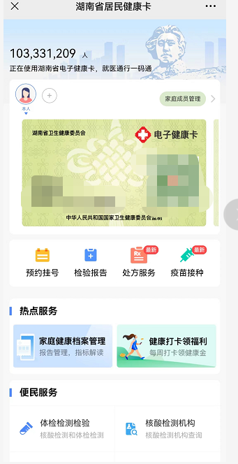 查询入口:湖南居民健康卡