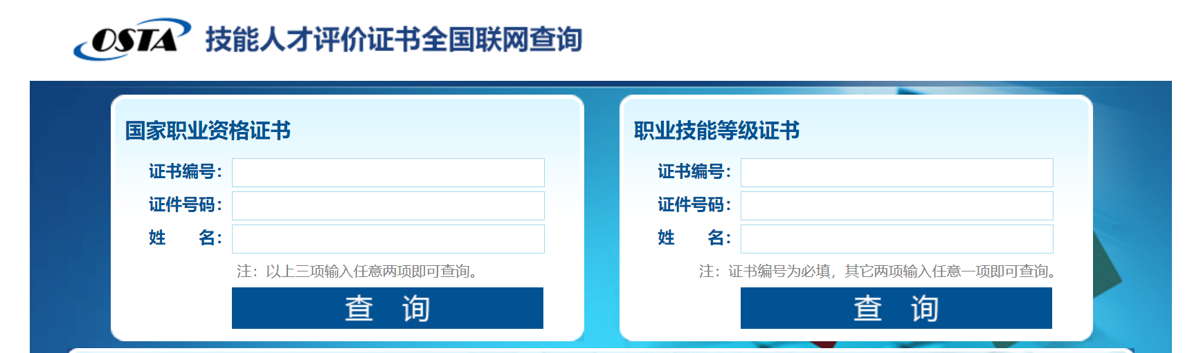②登录http://jndj.osta.org.cn/网址:可查询职业技能等级证书。