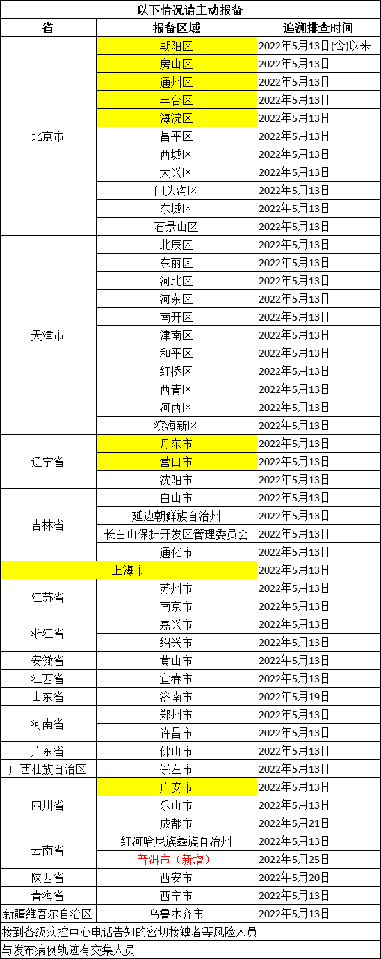 黄底为有中高风险区的城市,中高风险区以国务院客户端实时更新为准!