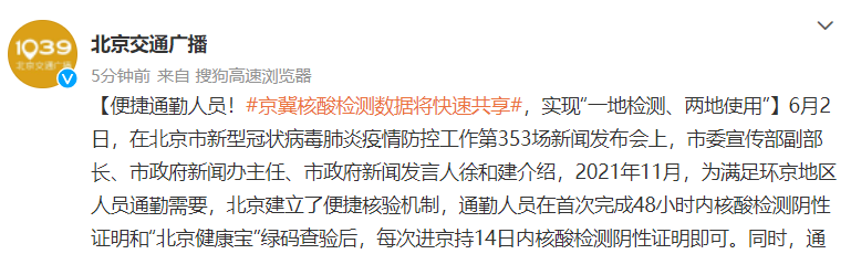 •京冀核酸检测数据将快速共享,实现“一地检测、两地使用”