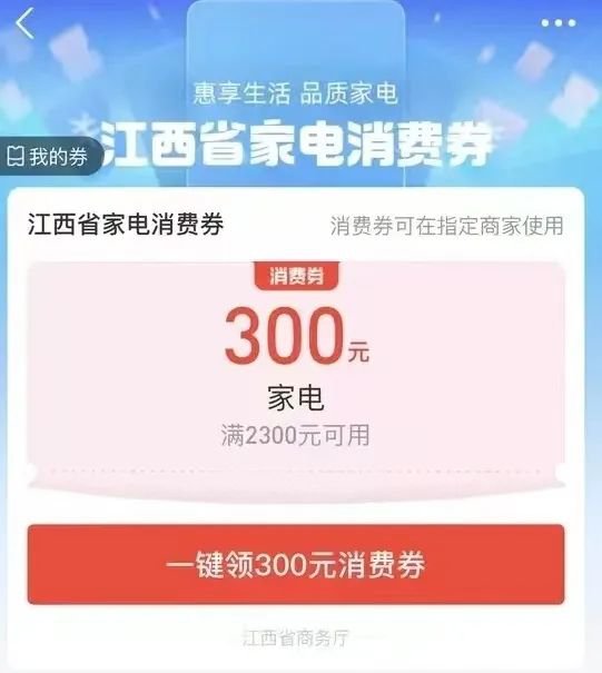 4.领券入口:用户可通过点击支付宝首页氛围图、支付宝搜索“江西省家电消费券”或点击“赣服通”首页腰封图进入活动专题会场领取消费券。