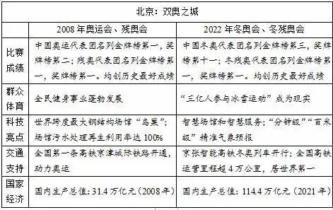 双奥之城,闪耀世界。两次奥运会,都显示了中国体育发展的新高度,展示了中国综合国力的跨越式发展,也见证了你从懵懂儿童向有为青年的跨越。亲历其中,你能感受到体育的荣耀和国家的强盛;未来前行,你将融入民族复兴的澎湃春潮。卓越永无止境,跨越永不停歇。