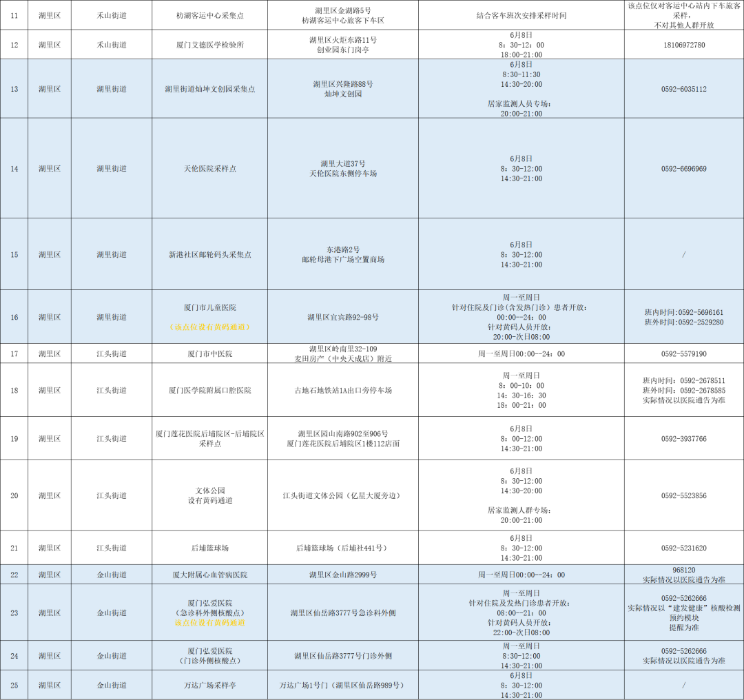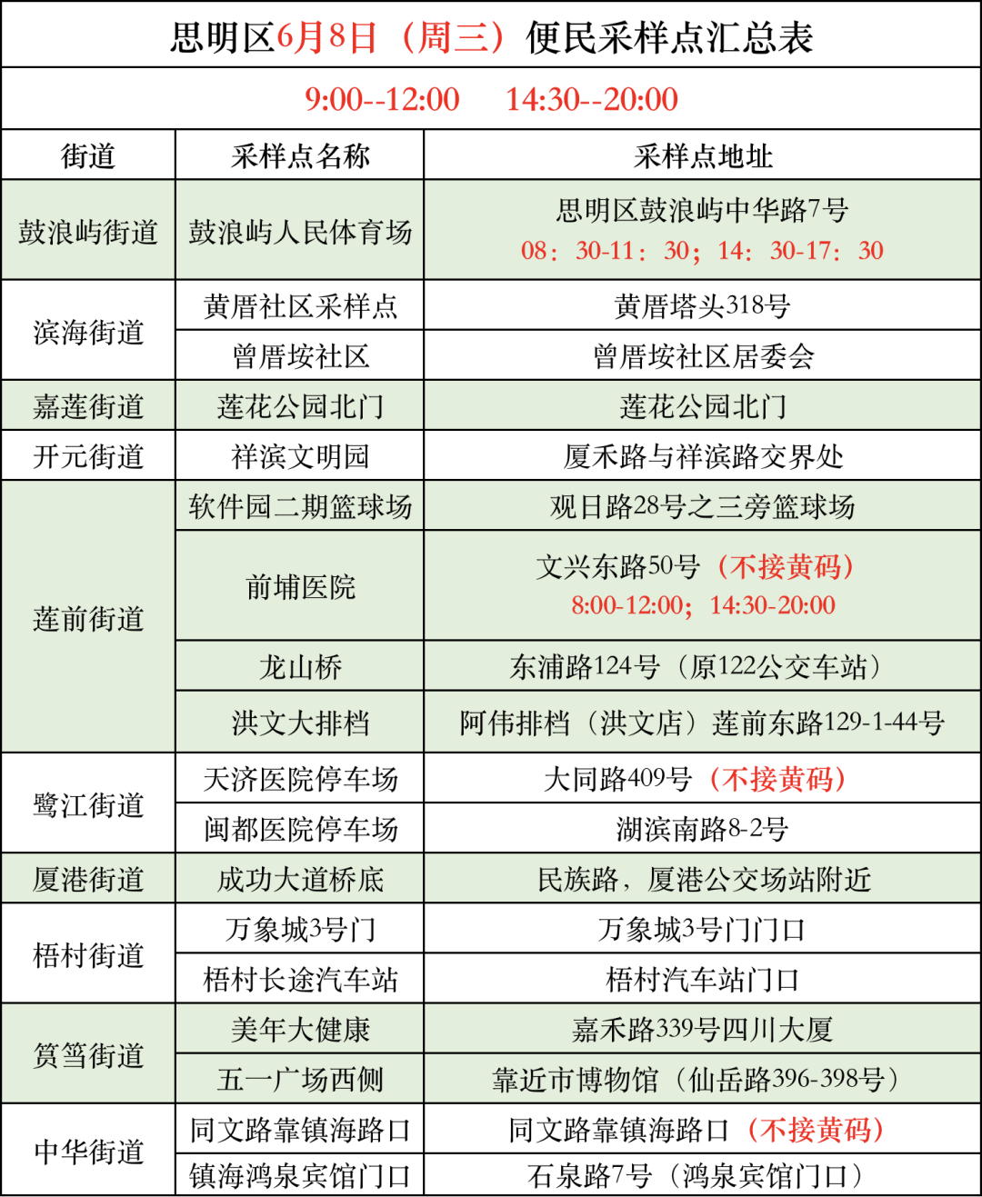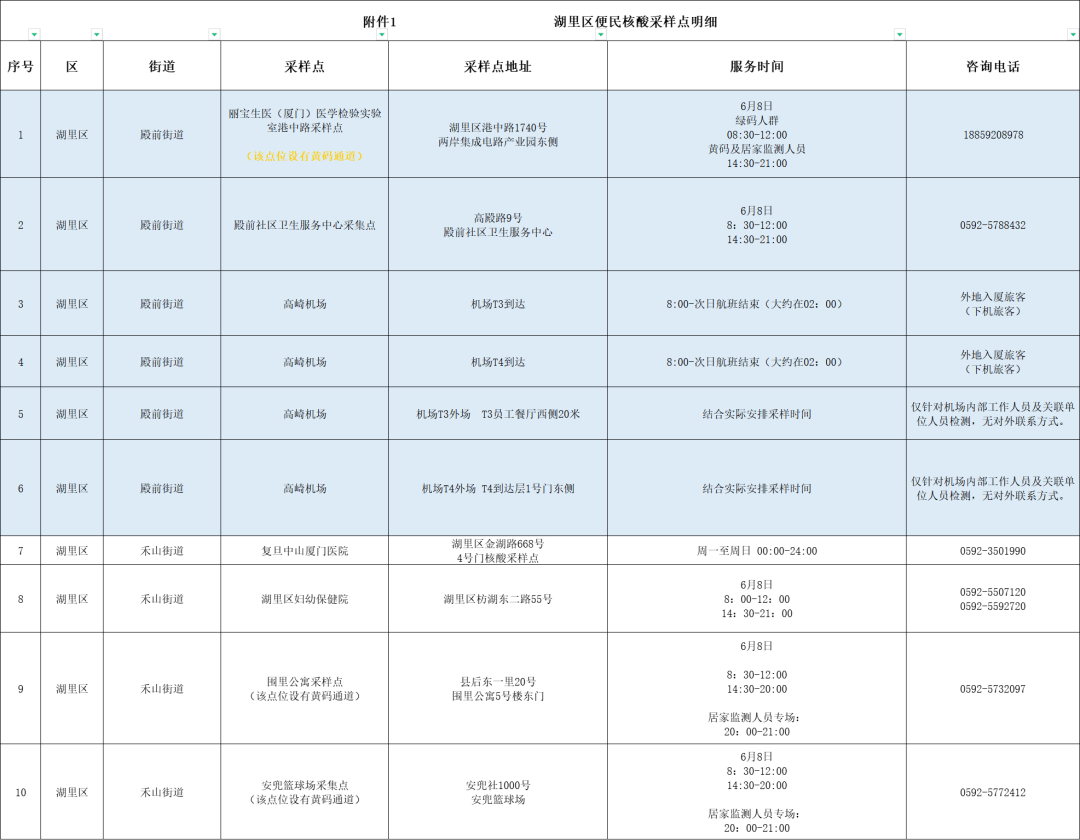 2022年6月8日厦门免费核酸检测点汇总(六区全)