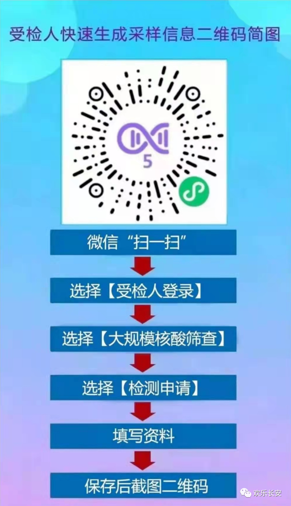 1.坚持“应检尽检,不漏一户,不落一人”。此次核酸检测使用“粤核酸5”,请各位市民提前使用“粤核酸5”录入个人信息生成二维码后截图保存(具体流程见下图,之前已申请的依然有效)。老人、小孩等无智能手机的人群可由家人代为登记。