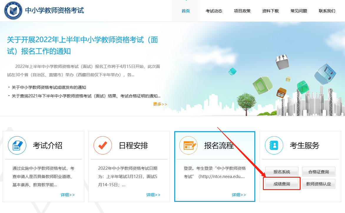 1、登录中小学教师资格考试网,点击【成绩查询】,进入具体查询页面。