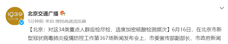 信息来源:6月16日北京市新型冠状病毒肺炎疫情防控工作第367场新闻发布会