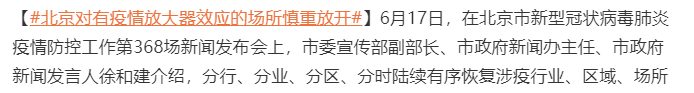 6月17日北京发布会通报慎重开放对疫情放大器效应的场所