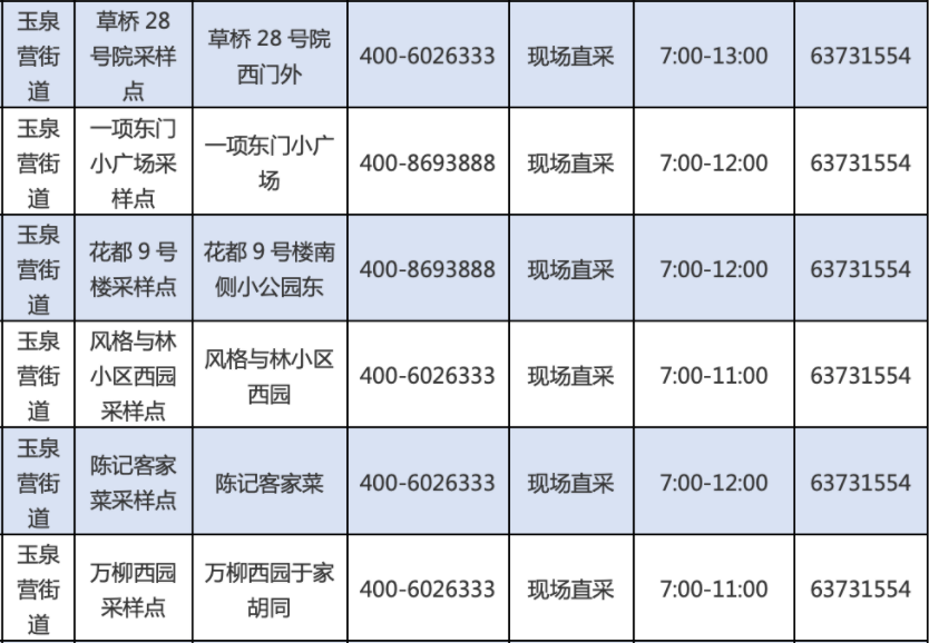 ➤北京丰台玉泉营街道常态化核酸检测点【因各采样点会有动态调整变化,具体实际情况为准】