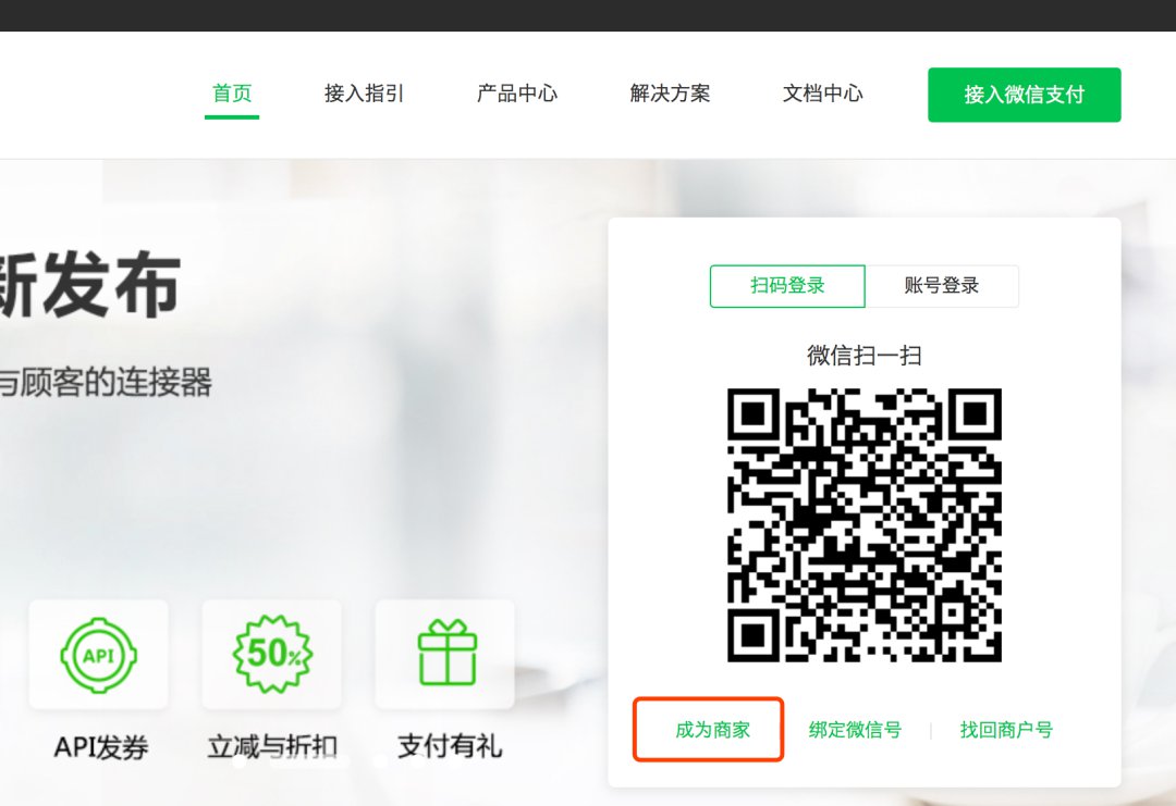 1、从电脑端进入商户平台,在右侧二维码下方“成为商家”处进入商业支付申请。