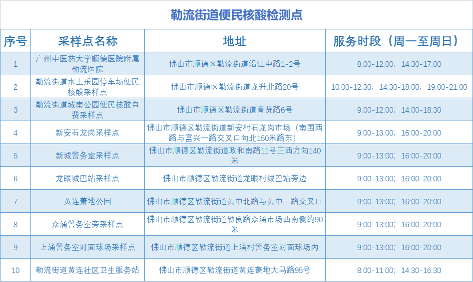勒流设10个便民核酸采样点