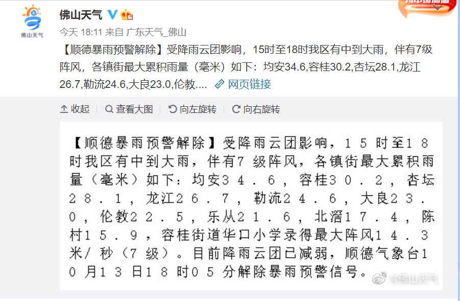 【顺德暴雨预警解除】