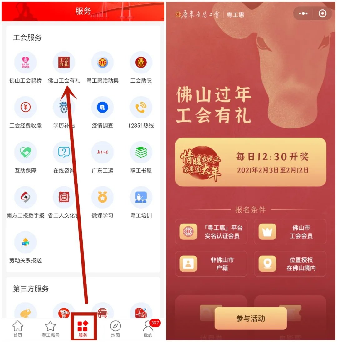 注:已在“粤工惠”平台实名认证、位置授权在佛山境内的非佛山户籍工会会员可参与此次活动。