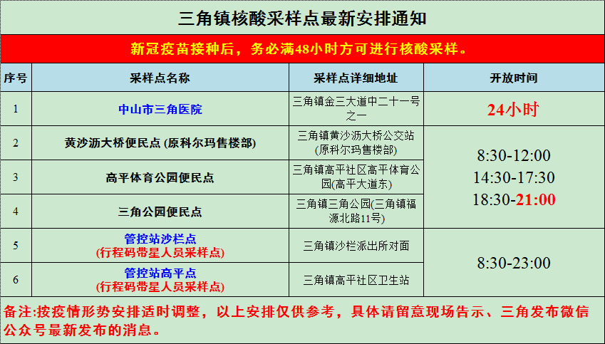 中山三角镇春节核酸检测点(中山港口镇核酸检测点)