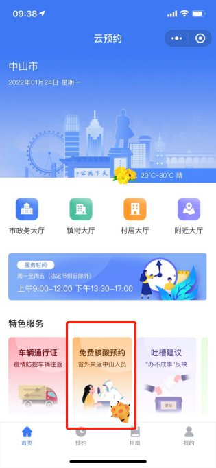 中山云预约核酸检测预约流程