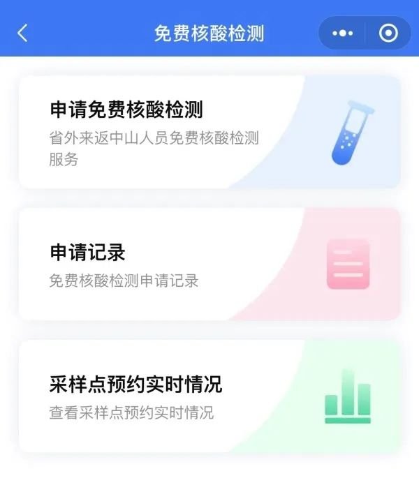 为规范检测流程,分流检测人员,即日起,省外返回中山人员要在“中山云预约”小程序上进行核酸预约后,即可享受免费核酸检测服务。