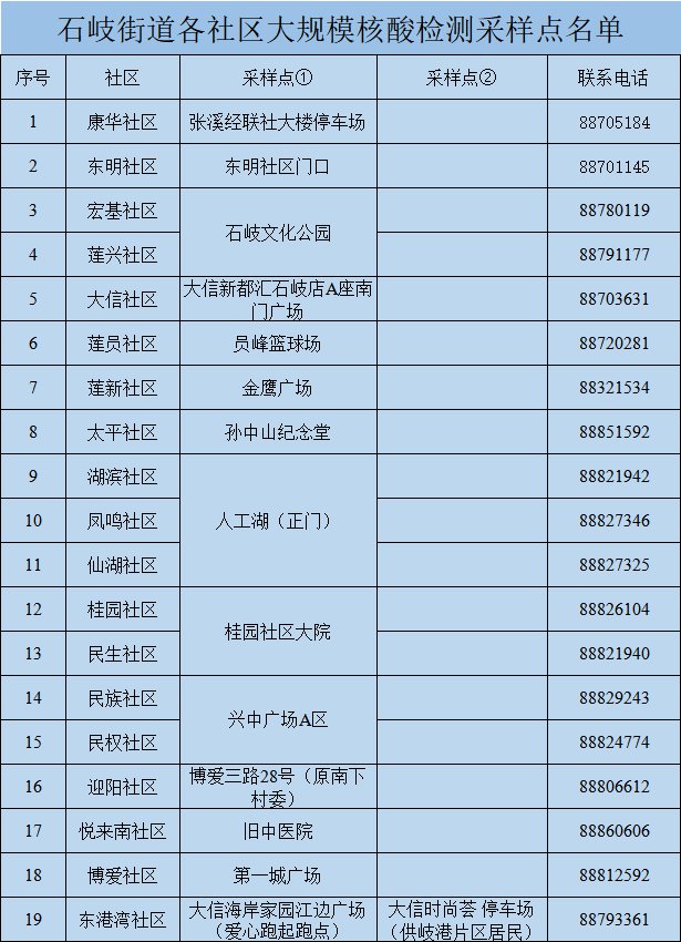 自6月7日启动大规模核酸检测以来,在各位市民、医护人员、志愿者和企事业单位的共同努力下,石岐大规模核酸检测任务即将完成,进入了查漏补缺阶段。为实现应检尽检、不漏一人,切实有效防范疫情扩散风险,现通告如下: