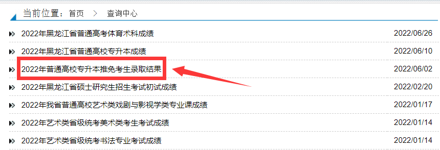 一、2022黑龙江专升本免推考生录取结果查询步骤: