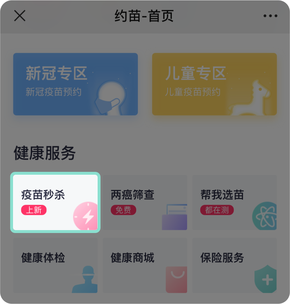 您还可以点击「约苗」公众号首页【健康服务】—【疫苗秒杀】进入秒杀小程序参与秒杀。