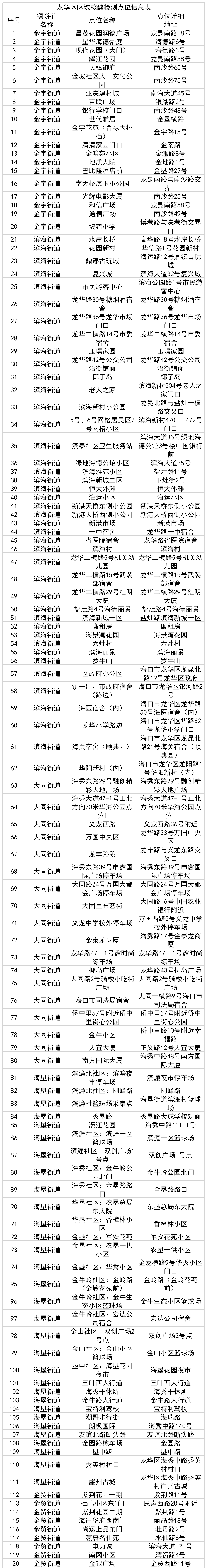 实施范围为龙华辖区大同街道、金贸街道、海垦街道、金宇街道、中山街道、滨海街道全域和城西镇部分区域。龙华区设置采样点共253个。(详情请认真查看本文附表。)