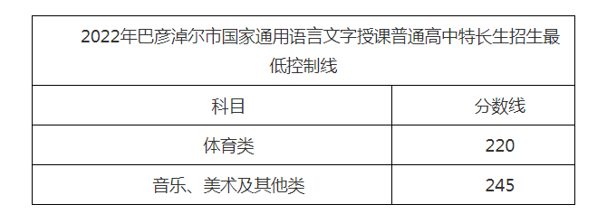 2022年巴彦淖尔市国家通用语言文字授课普通高中特长生招生最低控制线