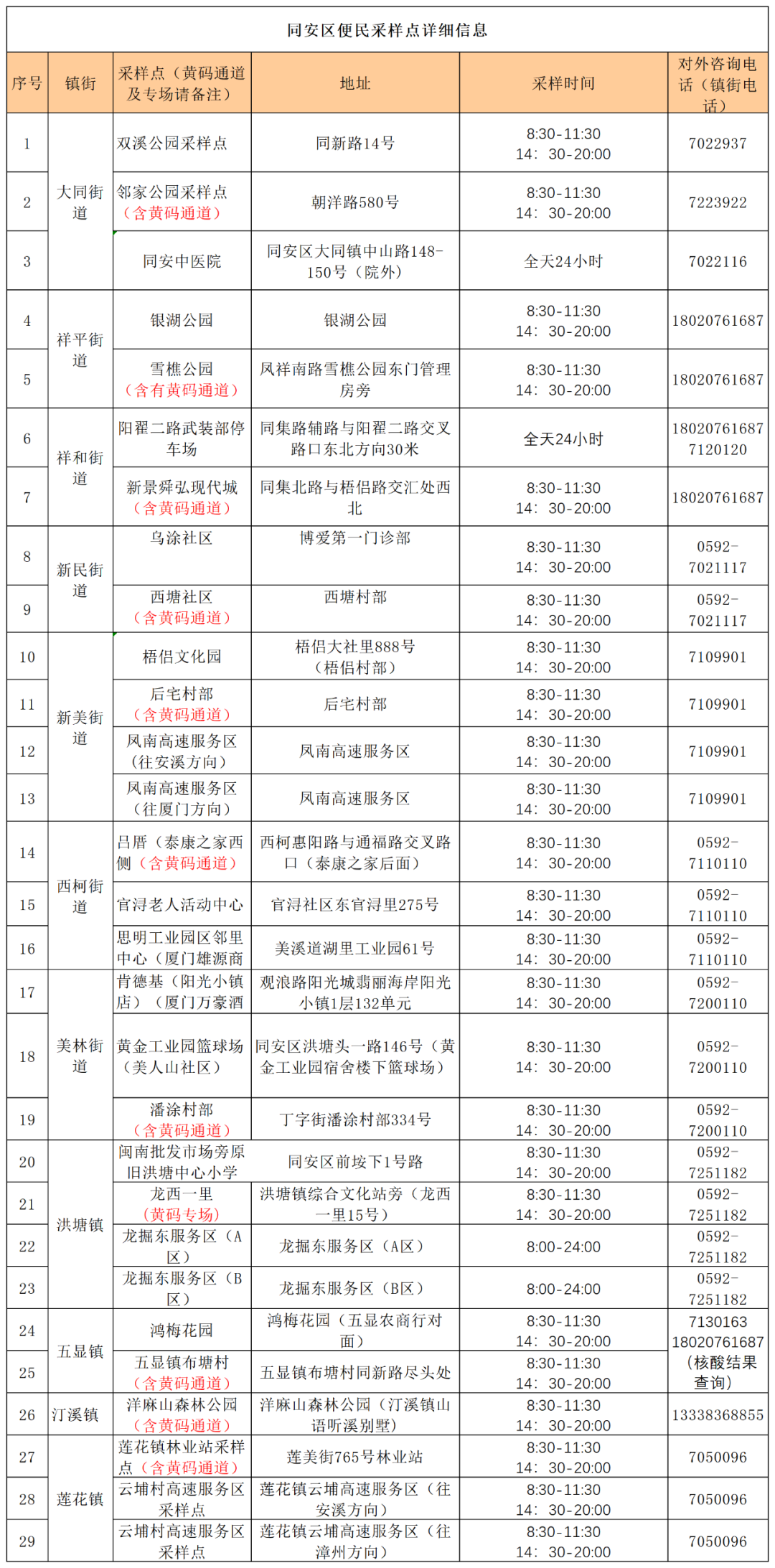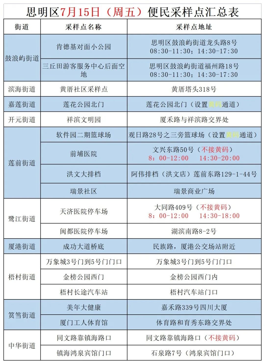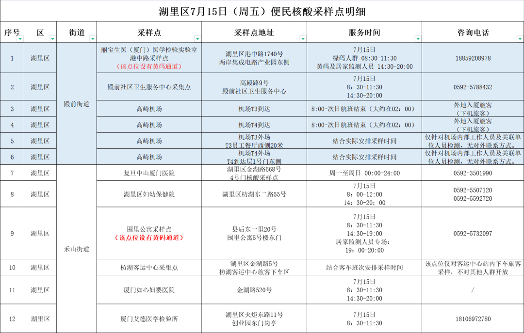 厦门免费核酸检测地点7月15日(6区全)