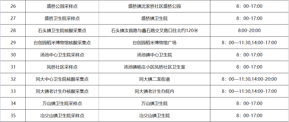 全县529个临时核酸采样点和35个便民核酸采样点[具体地点以各镇(园区)通知为准]。