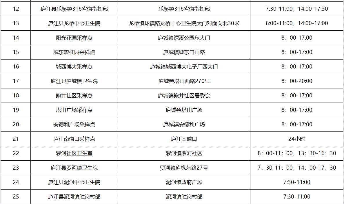 便民核酸采样点:8:00-17:00。