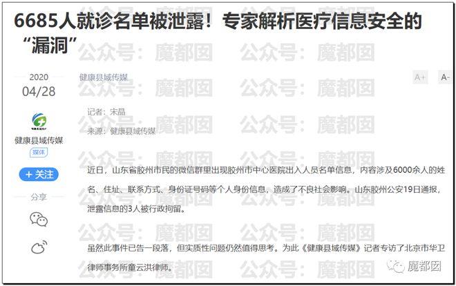 2020年某地6685名患者的就诊名单被泄露