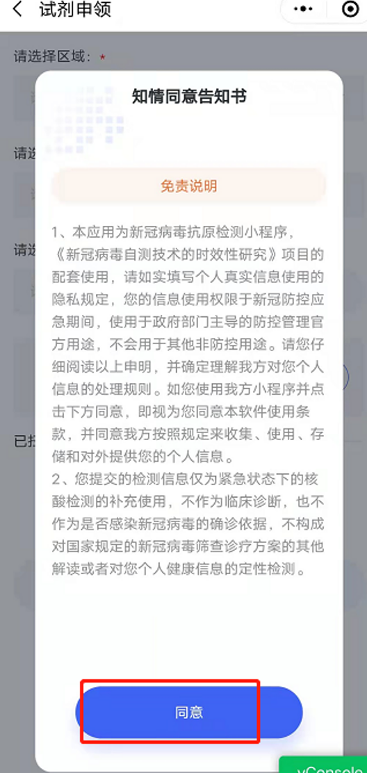 (1)请选择机构:选择是跟哪个机构申领的试剂。