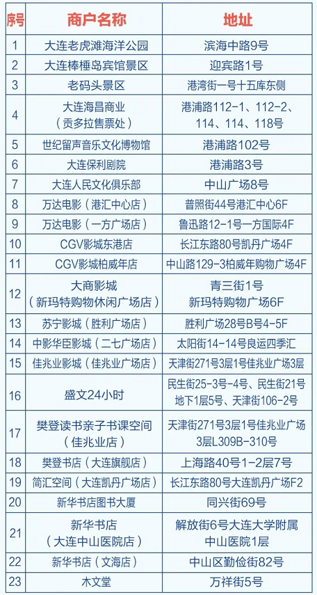 2022大连中山区文旅消费券可使用商家名单如下↓↓