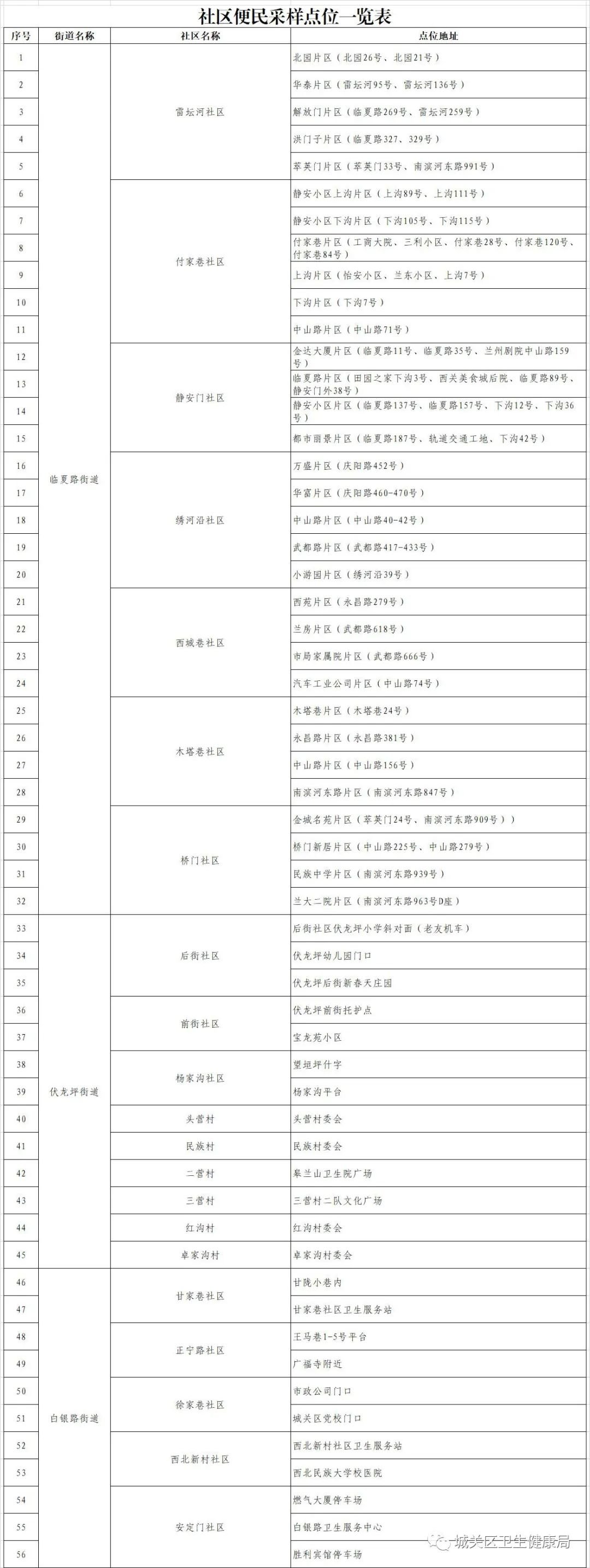 兰州城关区按照“一周全覆盖”核酸检测的要求,对各类人群按风险高低开展1天1次到1周1次不同频次的定期核酸检测(获取各类人群检测频次信息请扫描或识别二维码)。
