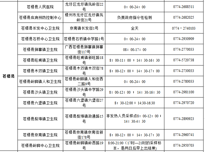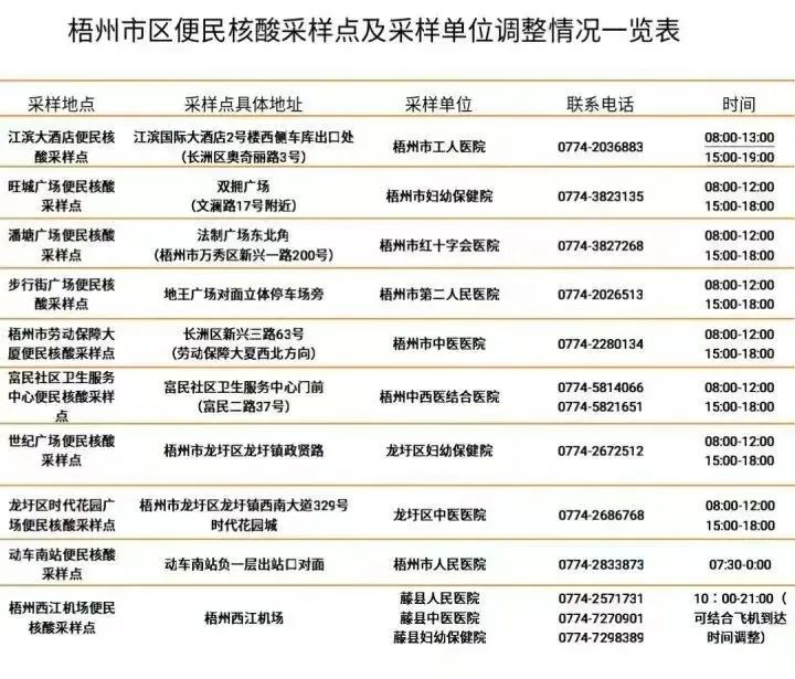 以下汇总梧州市部分街道便民核酸采集点信息,请居民就近参加采集: