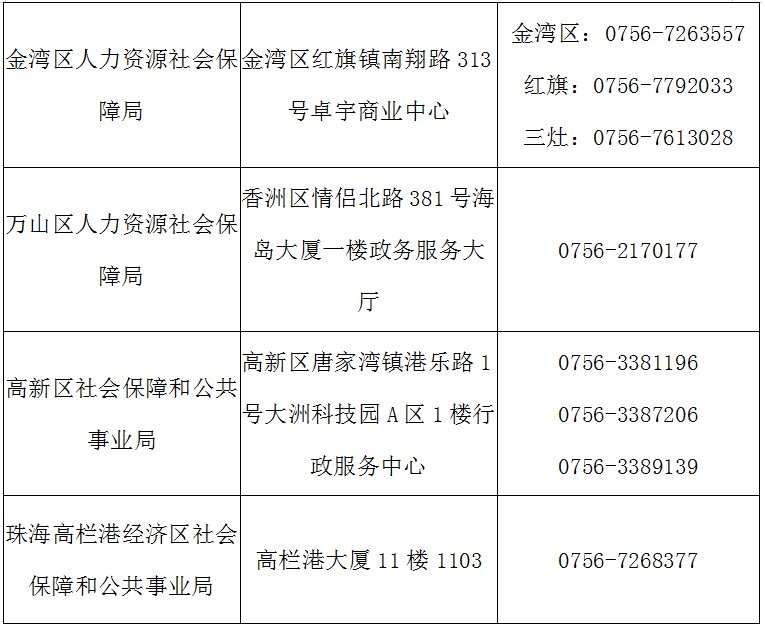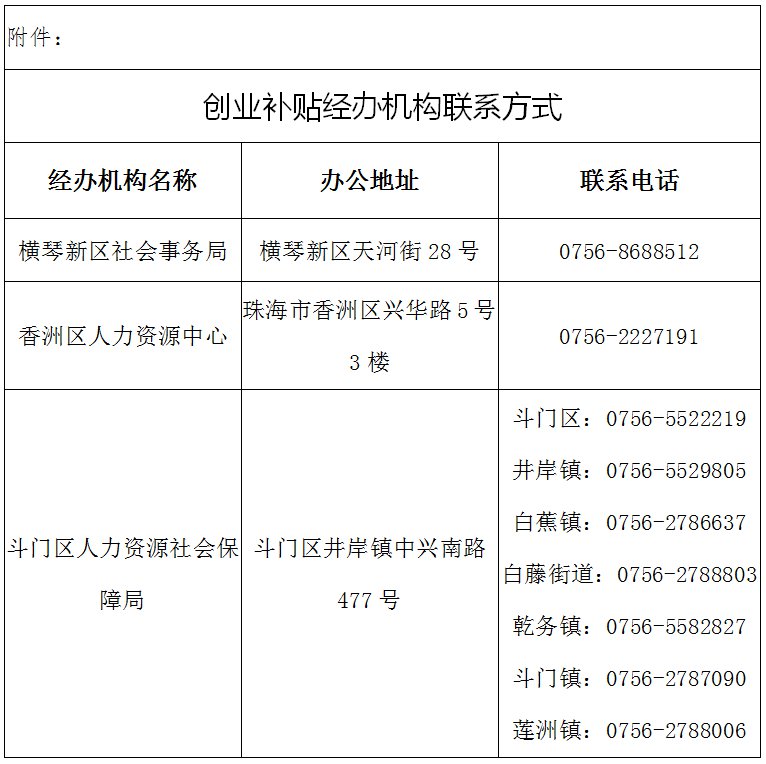 珠海创业补贴经办机构联系方式(地址+电话)