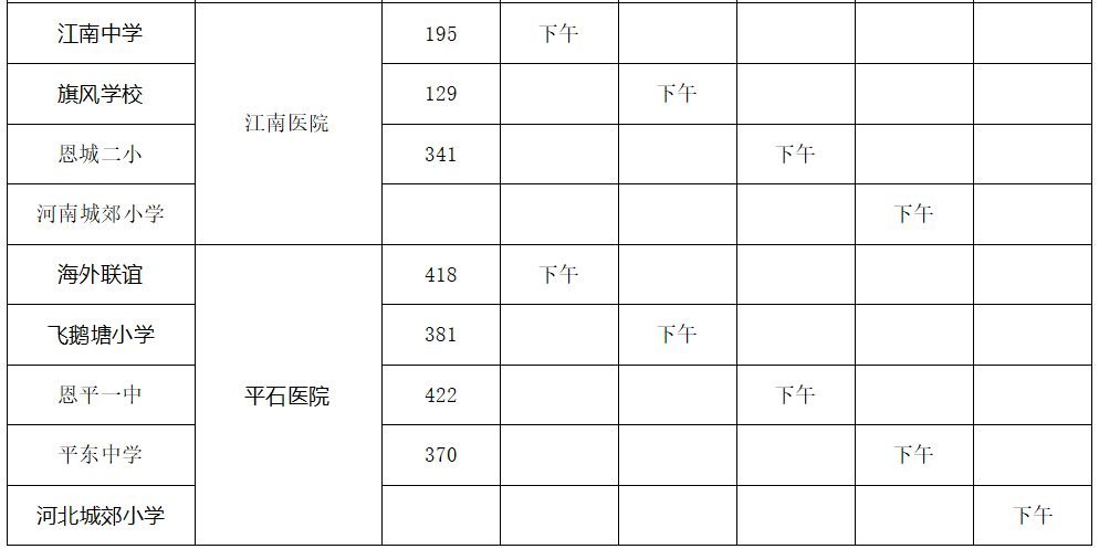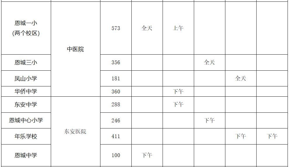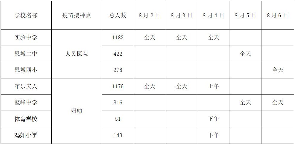 注:农村12—14周岁学生在所属镇医院进行接种,8月6日前完成。
