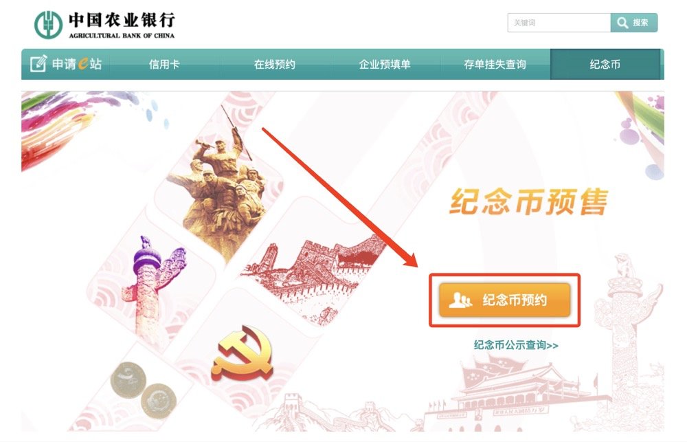 进入页面后点击橙色按钮“纪念币预约”进入预约。