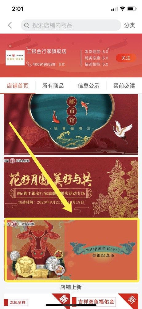 3.选择2021中国辛丑(牛)年金银纪念币专栏,并进入页面。