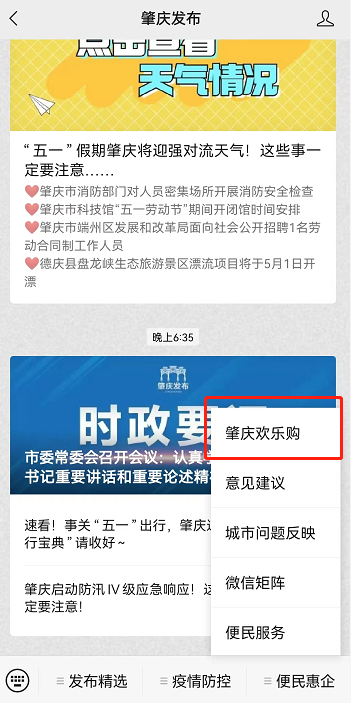 消费者还可通过“肇庆发布”“肇庆商务”“肇庆西江网”微信公众号菜单栏