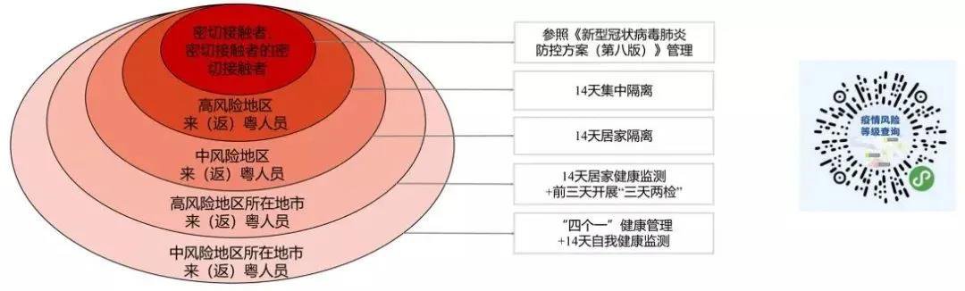 返回广东后,若发现近14天到过中高风险地区以及有本土疫情报告的城市、与阳性人员同乘交通工具或活动轨迹有交集请主动向社区报备,并配合做好疫情防控措施。具体防控措施参照下图。