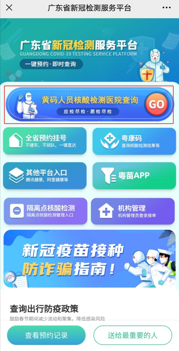 2021年1月,广东卫健委上线了“广东省新冠检测服务平台” ,可以实现广东全省一键查询黄码核酸检测。